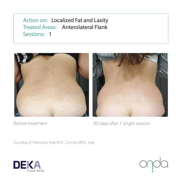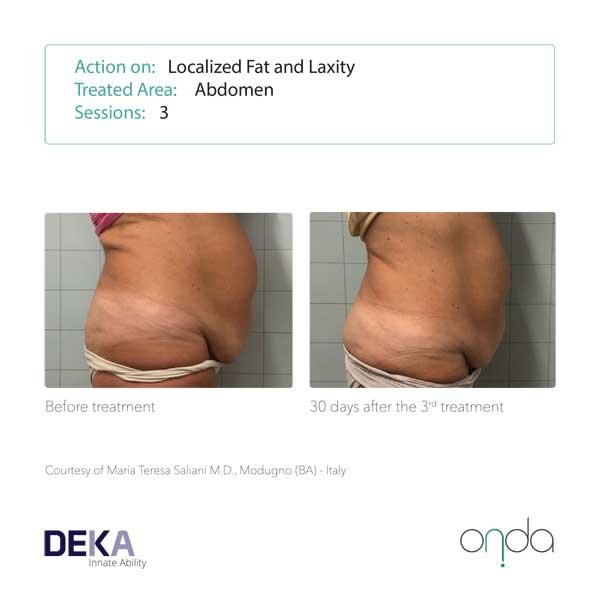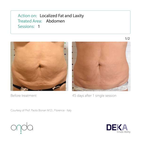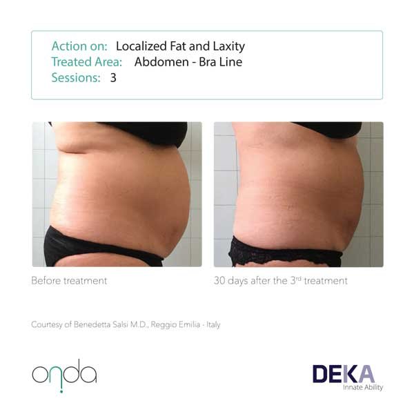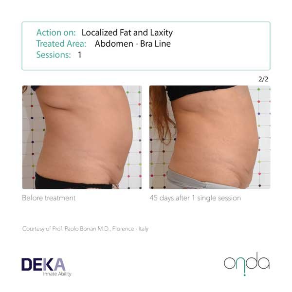 The results seen with radiofrequency devices are typically not long-lasting (transient). With Body Sculpting with ONDA®, we are specifically destroying a proportion of the fat cells, so results tend to be much longer lasting and in some cases may be permanent.